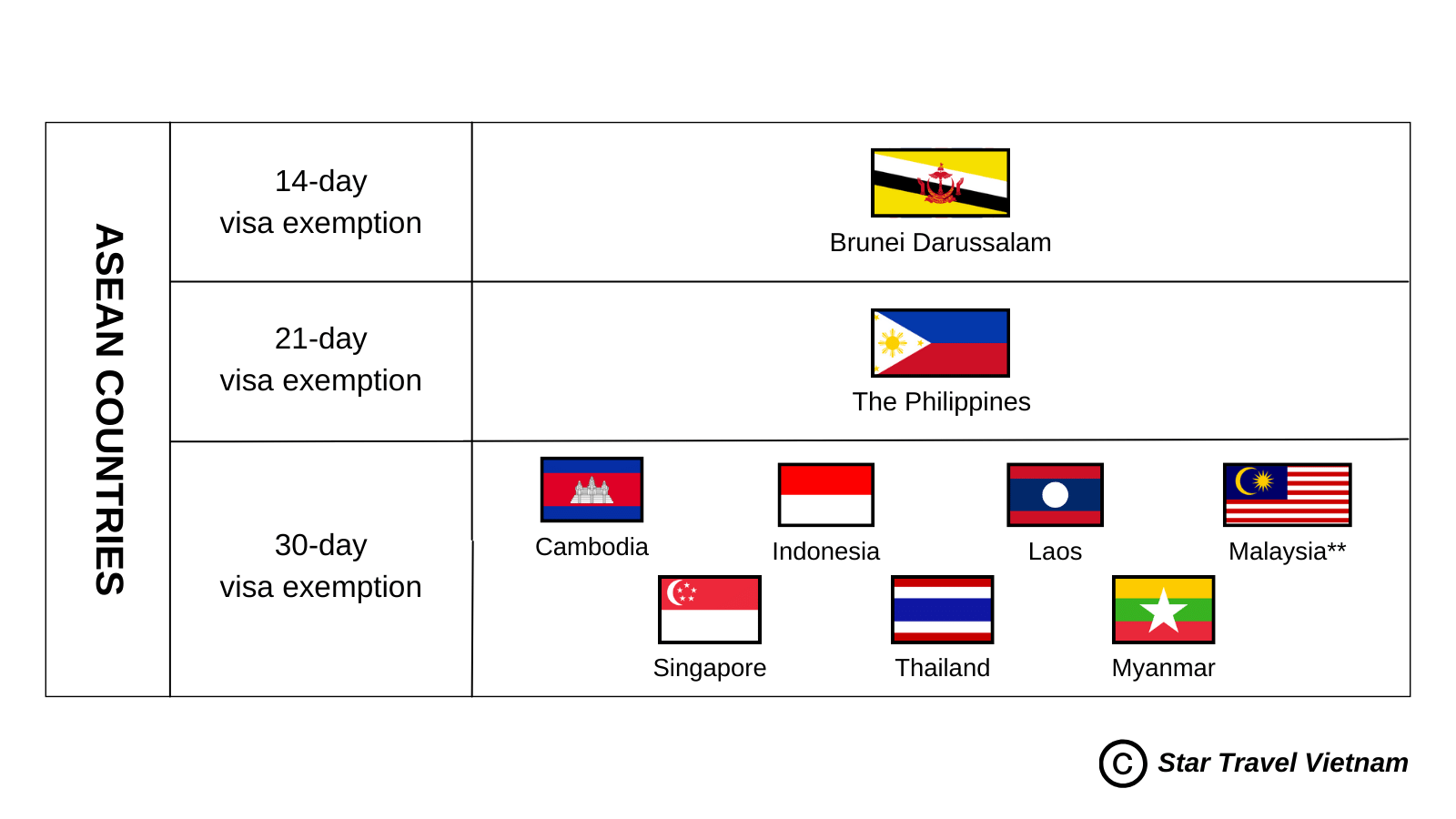 Passport holders from these countries have visa-free access to Vietnam. This also means you are exempt from any fee or processing time associated with the stamped visa.