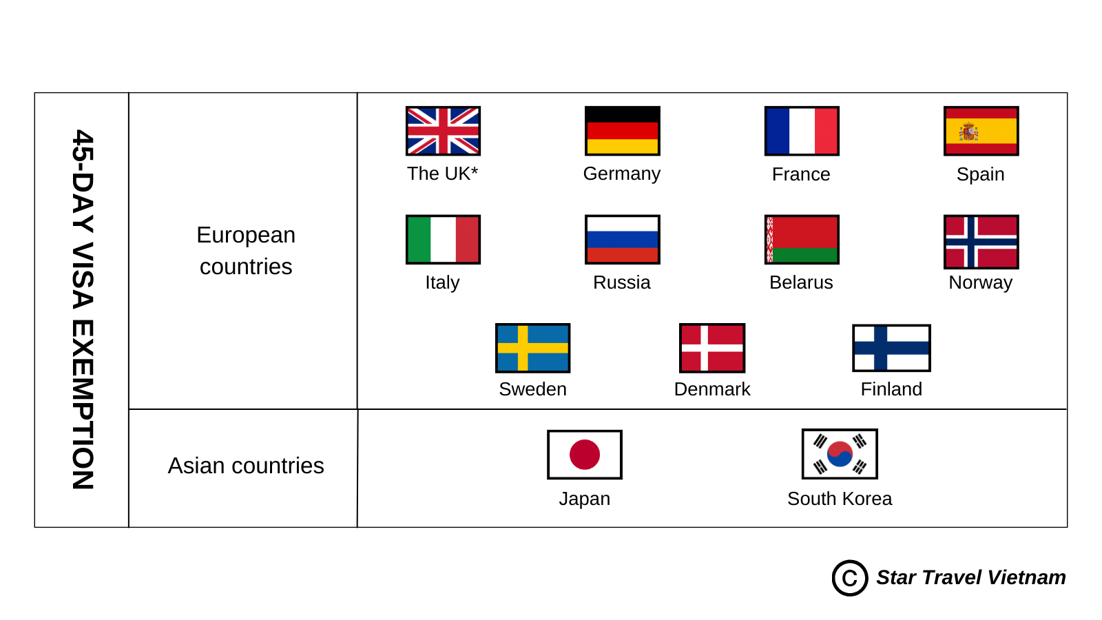 - Legal reference: Bilateral visa exemption agreements between Vietnam and these nations